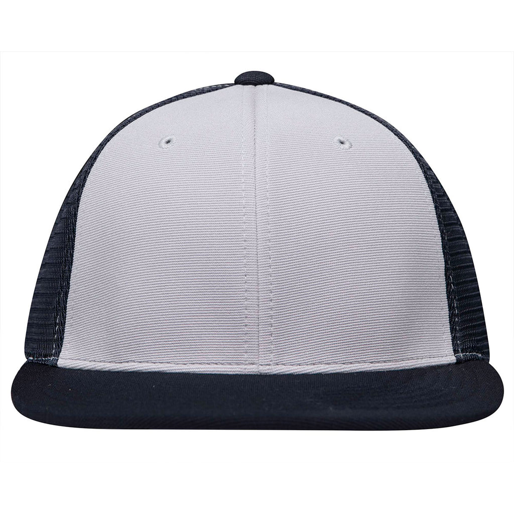 Add embroidery to the Pacific Headwear Silver/Navy/Navy Premium M2 Performance Trucker FlexFit Cap for a new take on a true classic. This trucker mesh performance mesh cap has a pro-stitch finish that is durable enough for daily wear as employee apparel or while hanging with friends. Add a custom logo to start building your logoed apparel line with this perfect combination of form, fashion, and function. The FlexFit cap has anti-microbial properties, moisture wicking, and is stain resistant. The full-profile design with a flat visor has a closed back for a one size fits most creation that will be an instant hit.Highlights