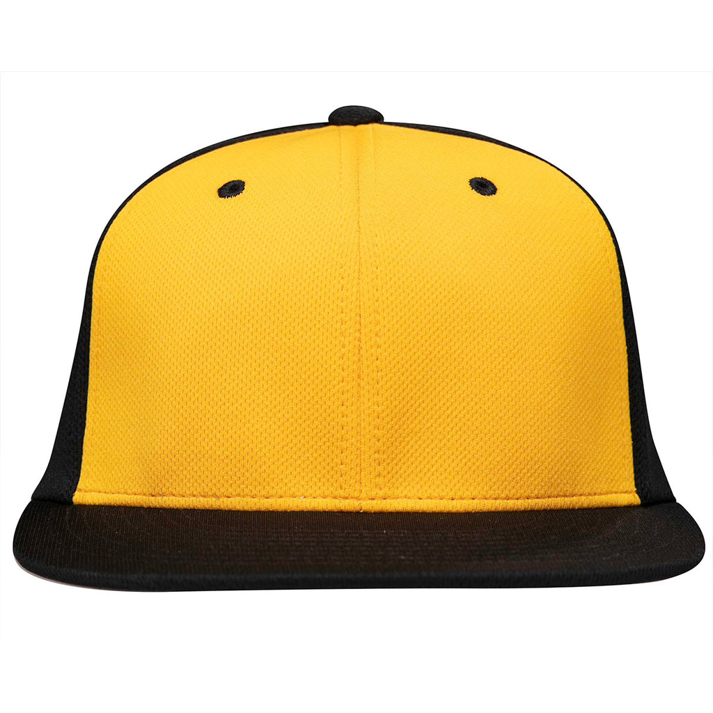 Turn heads with a custom embroidery Pacific Headwear Gold/Black/Black Premium P-Tec FlexFit Cap made of performance fabric and completed with a pro-stitched finish. The base color is made bolder with contrast colored eyelets and flat visor. Add a company logo to use as part of employee apparel to get your employees noticed or give them as custom gifts to loyal customers. The graphite undervisor with shapeable visor conforms to what you want and moisture wicking makes it comfortable for all day wear, even in warmer environments. A closed back means this is a one size fits most design.Highlights