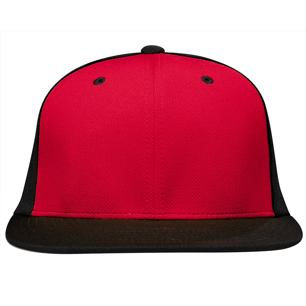 Turn heads with a custom embroidery Pacific Headwear Red/Black/Black Premium P-Tec FlexFit Cap made of performance fabric and completed with a pro-stitched finish. The base color is made bolder with contrast colored eyelets and flat visor. Add a company logo to use as part of employee apparel to get your employees noticed or give them as custom gifts to loyal customers. The graphite undervisor with shapeable visor conforms to what you want and moisture wicking makes it comfortable for all day wear, even in warmer environments. A closed back means this is a one size fits most design.Highlights