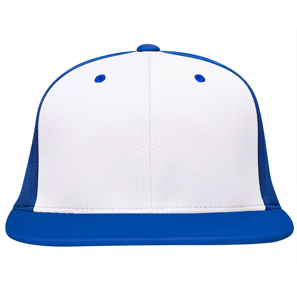Turn heads with a custom embroidery Pacific Headwear White/Royal/Royal Premium P-Tec FlexFit Cap made of performance fabric and completed with a pro-stitched finish. The base color is made bolder with contrast colored eyelets and flat visor. Add a company logo to use as part of employee apparel to get your employees noticed or give them as custom gifts to loyal customers. The graphite undervisor with shapeable visor conforms to what you want and moisture wicking makes it comfortable for all day wear, even in warmer environments. A closed back means this is a one size fits most design.Highlights