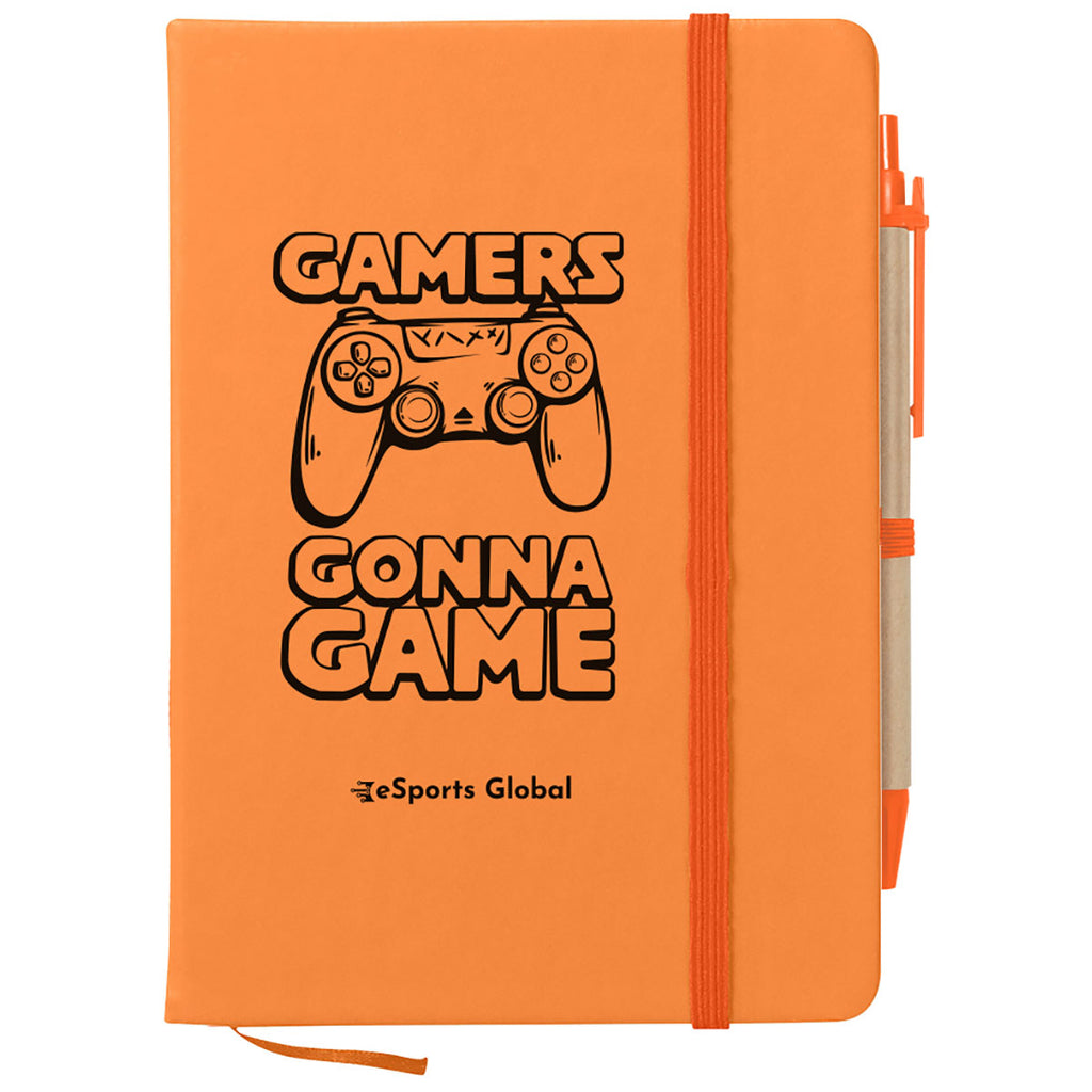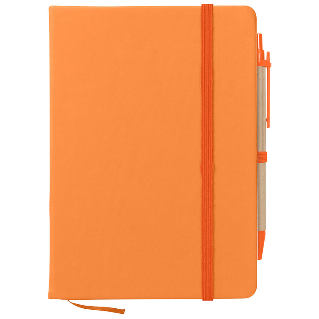 Stay organized with a custom Hit Orange Journal Notebook With Sticky Notes & Flags. This convenient little journal is ideal for research, office or meeting notes, and journaling. The 80-page lined notebook is housed in a polyurethane cover with a matching strap, pen, pen loop, sticky notes, and a built-in card holder.