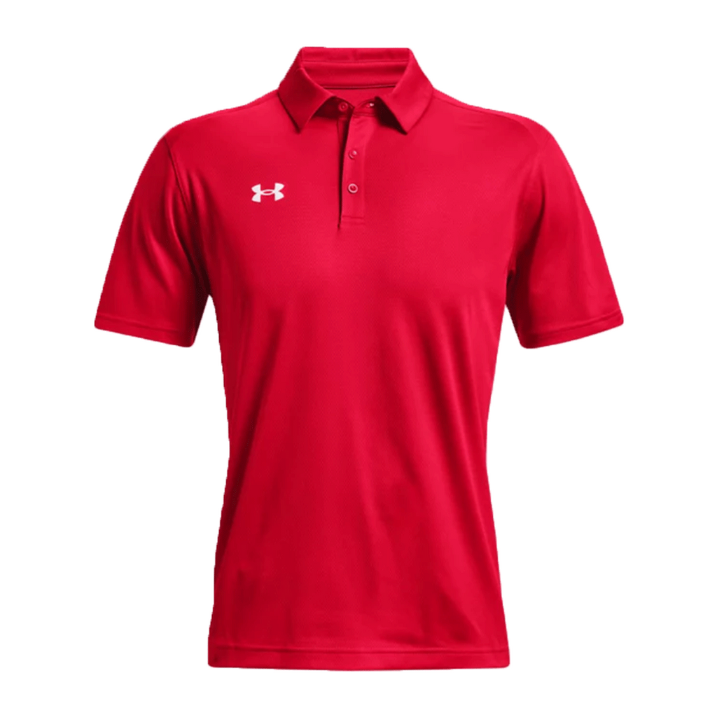 Add your business logo to the Under Armour Men's Red Tech Team Polo for a classic, athletic look the guys on your team will love to wear! With loose, textured fabric that breathes throughout the day, the corporate UA Tech polo for men helps deliver a comfortable feel with a clean-cut style. With your business logo embroidered clearly on the front, custom men's Under Armour polos can help your crew look united and ready for whatever comes next!