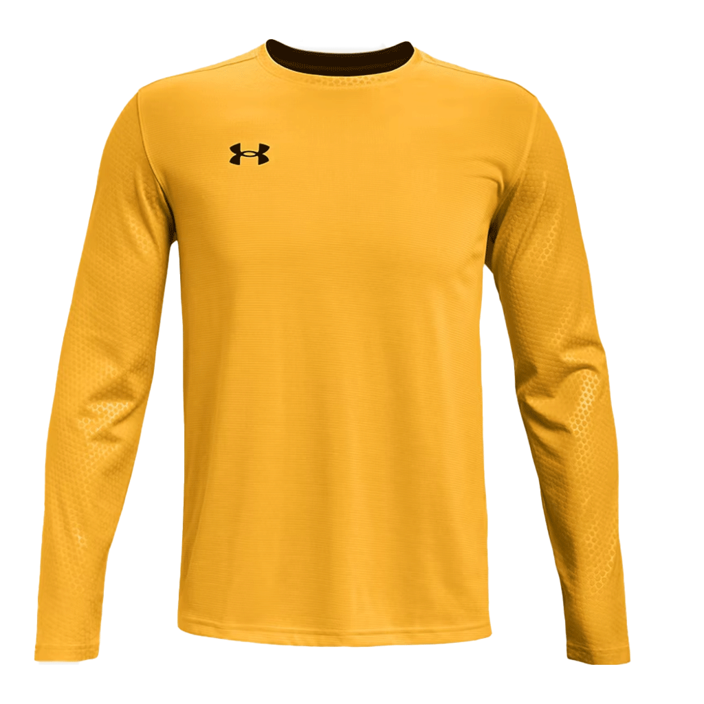 The Under Armour Men's Steeltown Gold Wall Goalkeeper Jersey keeps you warm all day long. This fitted long sleeve is light weight with micro thread fabric. Moisture wicking and keeps it shape. The ideal shirt for high paced activities and workouts. Place an order for your team with your printed logo of choice.