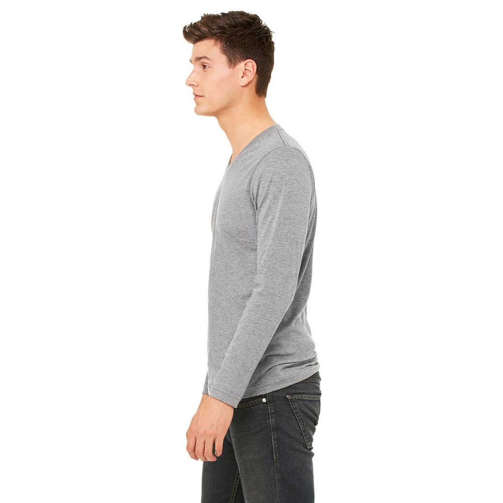 Bella + Canvas Unisex Grey Triblend Jersey Long-Sleeve V-Neck T-Shirt