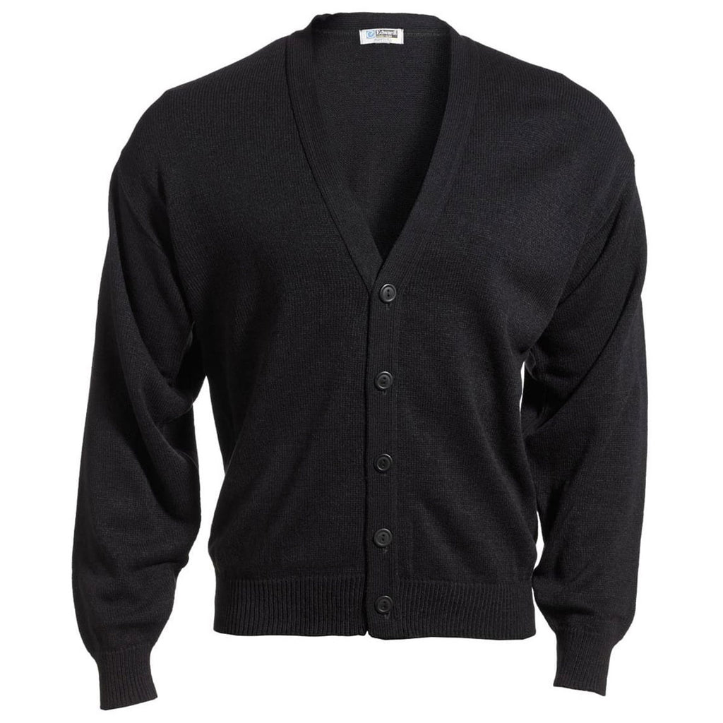 All can enjoy embroidery on the Edwards Unisex Black Jersey Knit Acrylic Cardigan made of 100% machine washable acrylic. The unisex V-neck jersey stitch cardigan has Tuff-Pil Plus high performance with colorfast, machine washable fabric. Add a company logo to use this cardigan as an employee gift or just to build your corporate apparel options. Try a custom logo to build your own wardrobe or give custom gifts that everyone can wear and enjoy. Perfect for layering without added bulk, these cardigans are highly versatile.Highlights