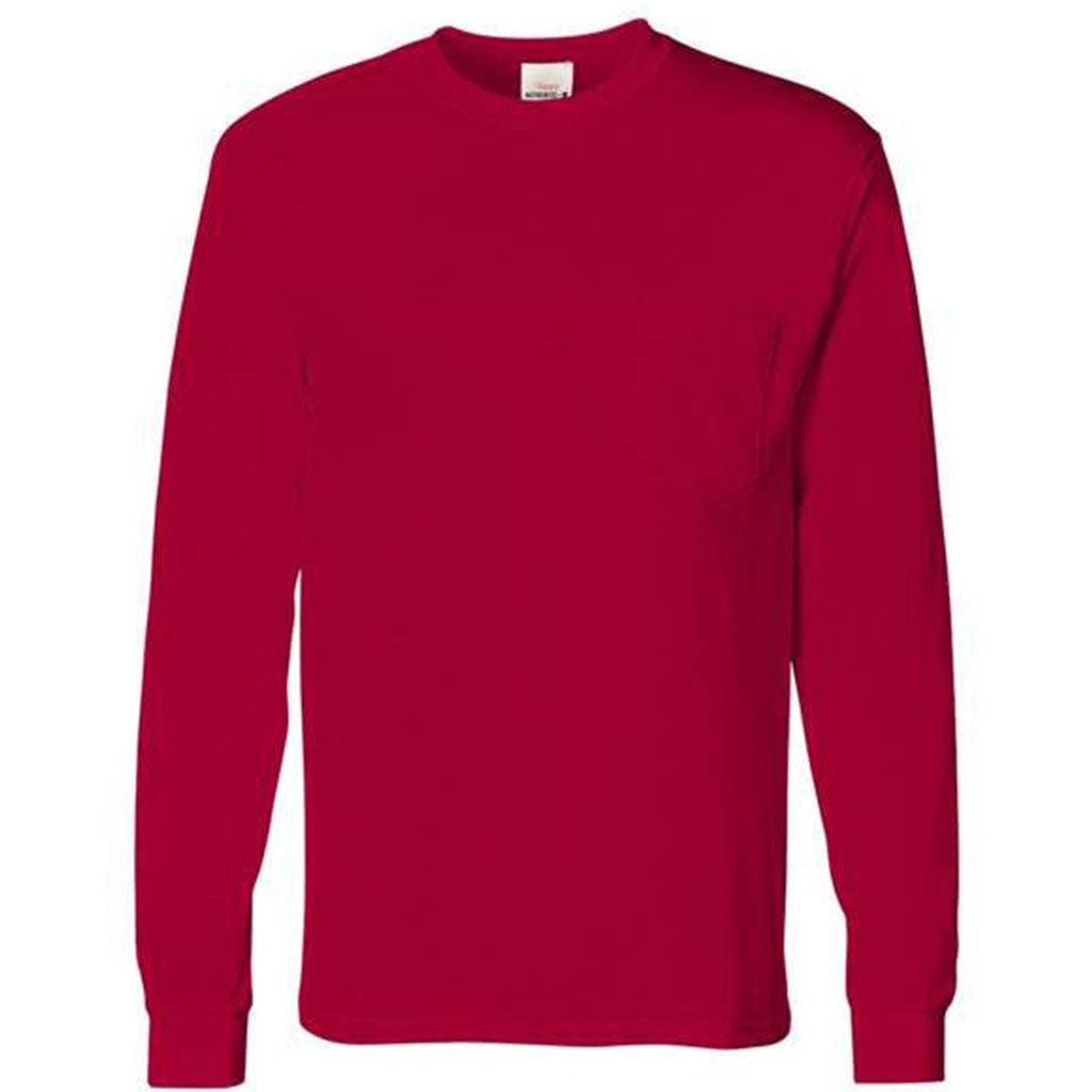 Hanes Unisex Deep Red Authentic Long Sleeve Pocket T-ShirtHighlights
