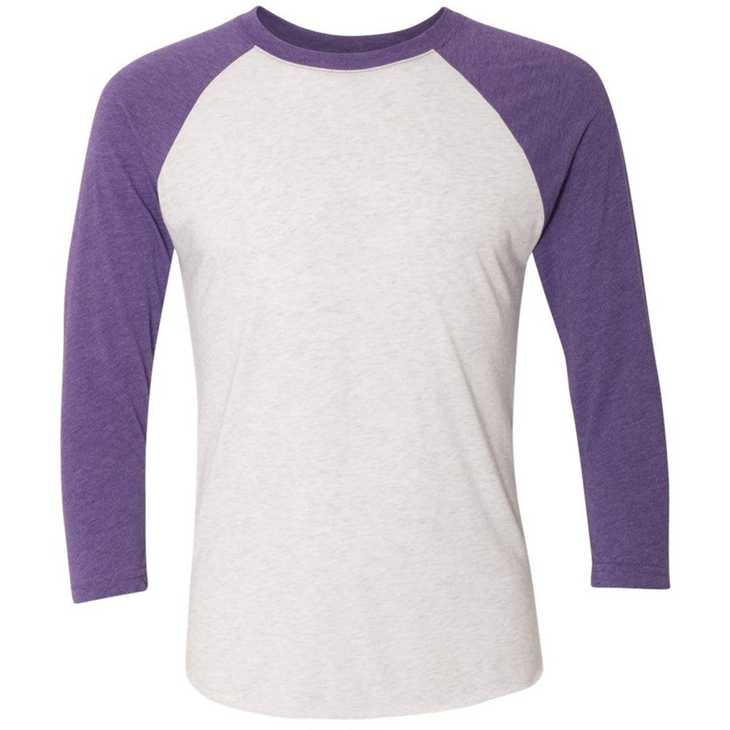 you've had enough of regular tees! No more short sleeves, no more long sleeves! The problem is, you're not sure what else is out there for your own unique, customized branding that might possibly separate you from the pack. Well, it's time to remember your fractions, because the Next Level Unisex Purple Rush/Heather White Triblend 3/4-Sleeve Raglan Tee offers the effective layering and unorthodox look you've been after for so long. Simply add your own customized logo to this tee and you'll find out how easy it is to offer a unique take on corporate swag. After all, it's amazing what sleeves can achieve.Setup includes free 2-color logo on 1 location. If you need more colors added to your logo, or another imprint location, please inquire with a Merchologist.