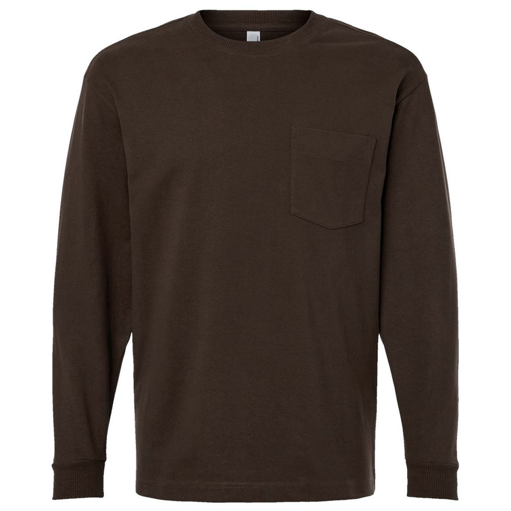 American Apparel Unisex Brown Super Heavyweight Long Sleeve Pocket Tee