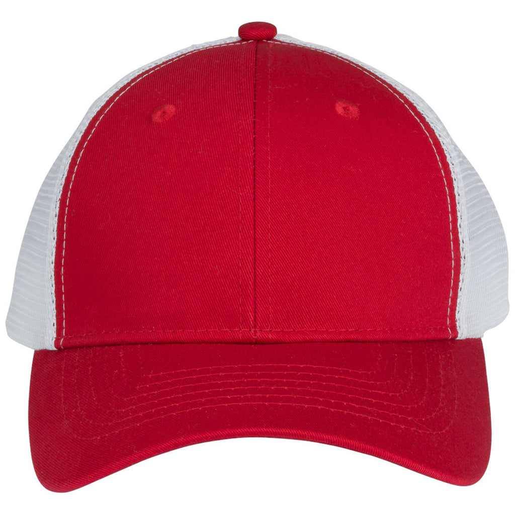 Be a classic in a custom logo Vantage Red Clutch Trucker Cap. This pop culture favorite has 100% cotton twill front panels and polyester white mesh back panels to create the iconic look. Add a company logo to the cap to offer as employee gifts for nearly any occasion. The one size fits all design has an adjustable snap back closure for fit. A pre-curved visor, sewn eyelets, and mid-profile design complete the look that has been around for many years. Add this look to your logoed apparel line and draw in new customers young and old.Highlights