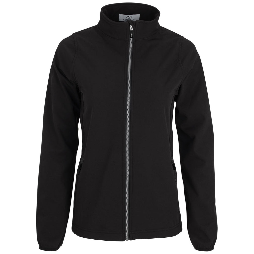 Get noticed in the custom embroidered Vantage Women's Black Turin Jacket made of engineered stretch bonded woven polyester with brushed back. The water repellant membrane offers a grey accented molded zipper and inner storm flap with chin guard and feminine princess seams. This simple, yet stylish jacket is perfect as an employee gift or custom gift for family and friends. Also, a wonderful option for a late evening or early morning round of golf when the weather is questionable, this jacket is up to perform.Corresponding Men's Style: Vantage Men's Black Turin Jacket