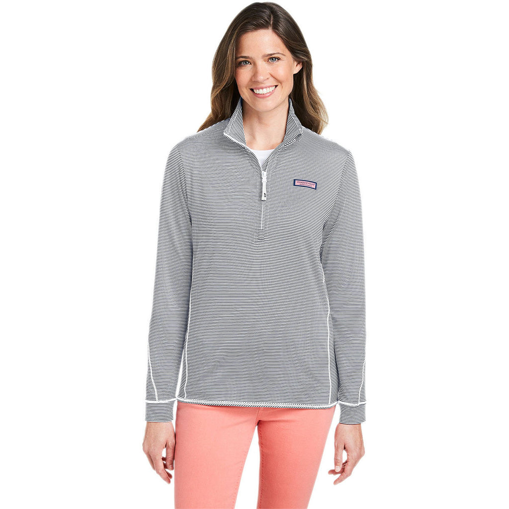 Vineyard Vines Women's Heather Grey Microstripe Sankaty Half-Zip Pullover