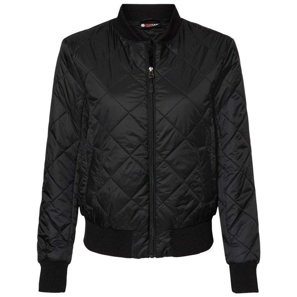 Design embroidery for the Weatherproof Women's Black Heat Last Quilted Packable Bomber for a creative look that also keeps you warm as you go about your day. The diamond quilted design has a coated nylon shell with polyester fill that is both wind and water resistant. A ribbed knit collar, cuffs, and waistband are a creative design that many will adore and recognize. Add a company logo to give as employee gifts to those who work their hardest. Open welt pockets keep your small items at hand as needed and when the weather warms, this bomber folds and stows into a separate pouch.
