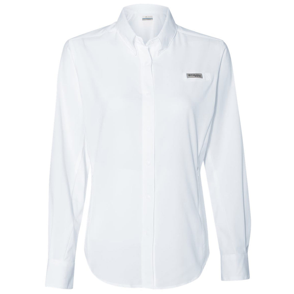 Columbia Women's White PFG Tamiami Long Sleeve Shirt with a corporate logo is ideal for trail guides, adventurers, and those who work hard daily. Made of polyester ripstop with sun protection and Omni-WICK with a vented back, this is a must-have for those who need something tough yet comfortable for all-day wear.This product cannot ship outside of the United States.