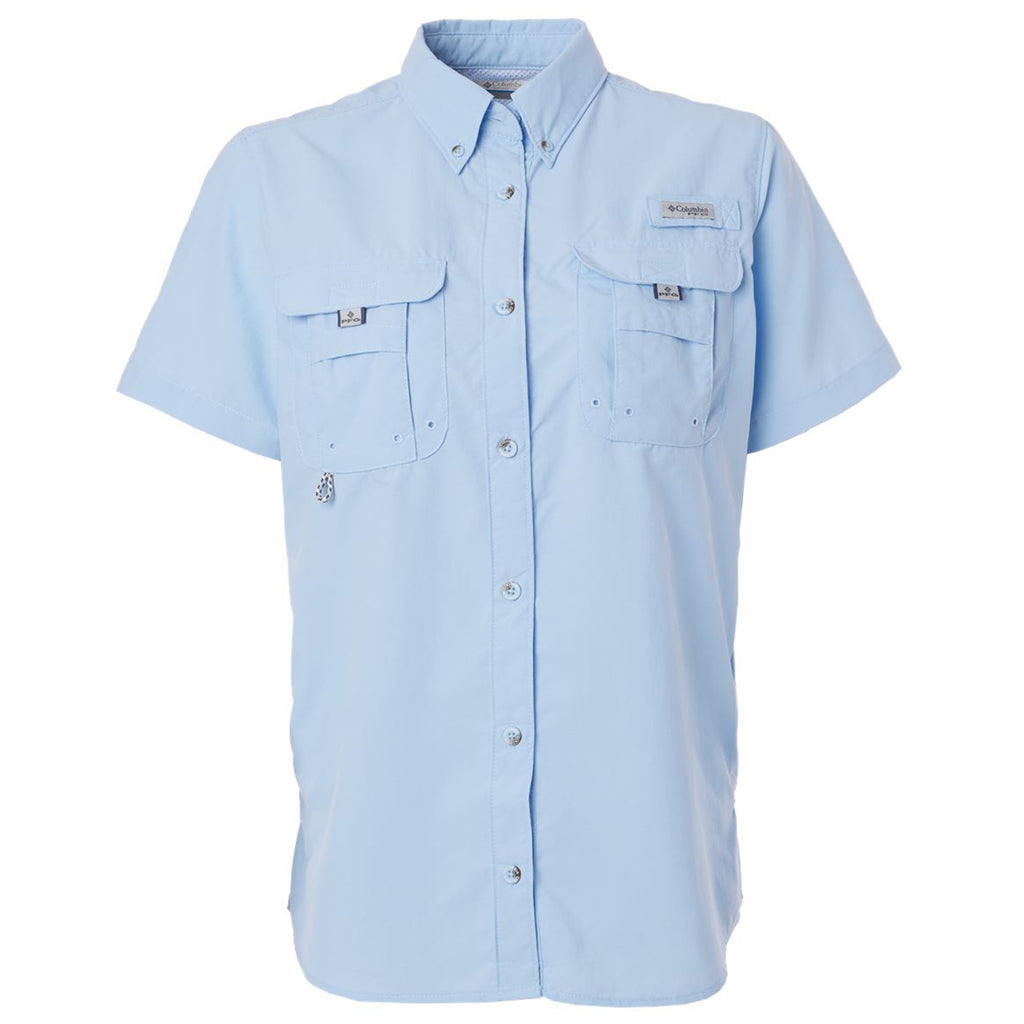 Choose a corporate logo for the Columbia Women's Sail PFG Bahama Short Sleeve Shirt made of Tactel nylon. This shirt is ready for hard work and adventure with broad spectrum UPF 50 sun protection, quick-dry technology, a rod holder, and a utility loop. The vented shirt keeps you cool, whether hunting, fishing, or working all day.This product cannot ship outside of the United States.