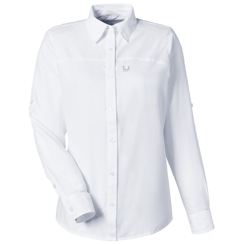 HUK Women's White Tide Point Long Sleeve Shirt