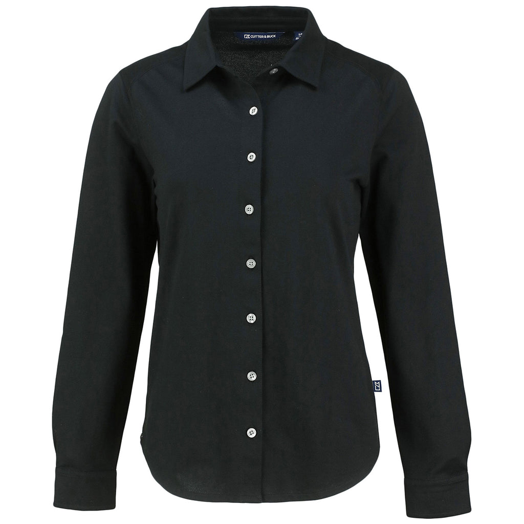 Cutter & Buck Women's Black Advantage Tri-Blend Eco Soft Pique Long Sleeve Knitted Button Down