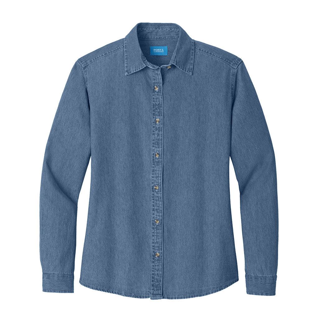 Port & Company Women's Faded Blue Long Sleeve Value Denim ShirtHighlights