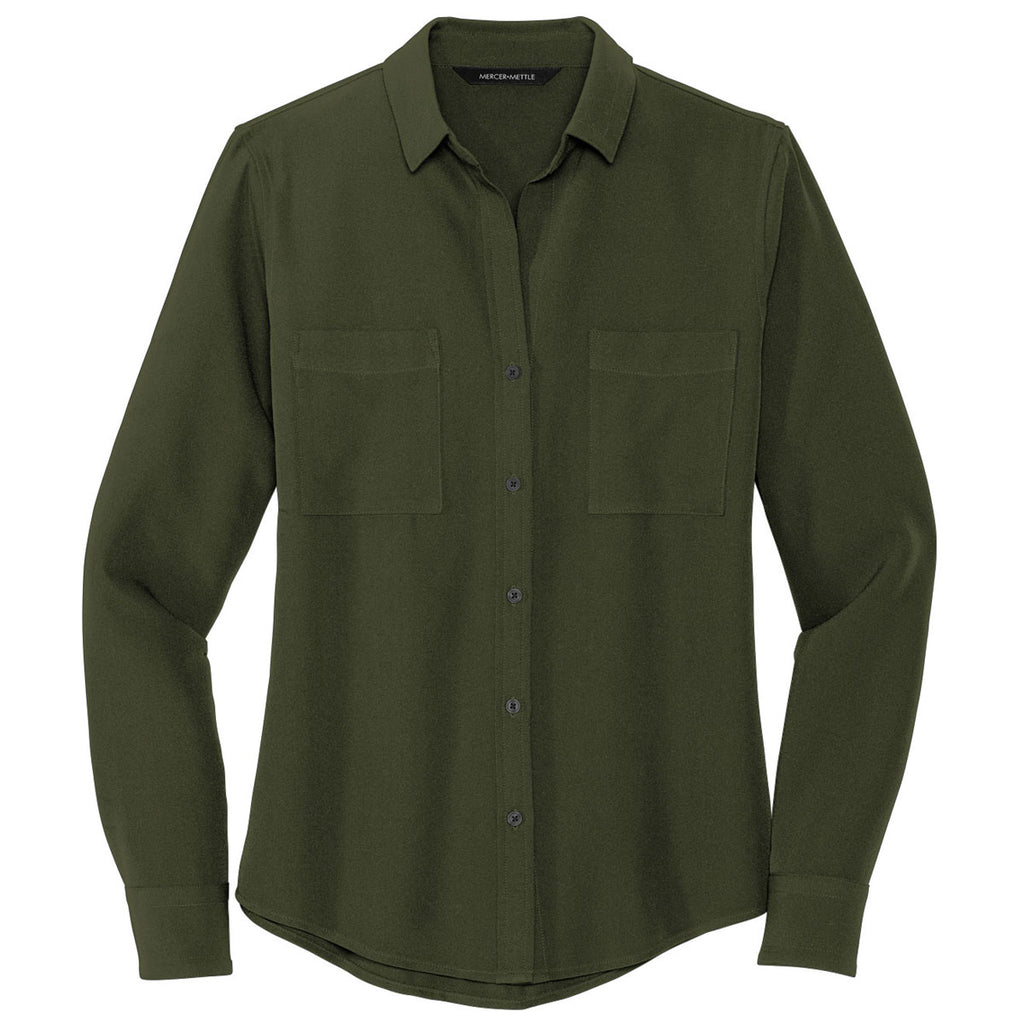Mercer+Mettle Women's Townsend Green Stretch Crepe Long Sleeve Camp Blouse