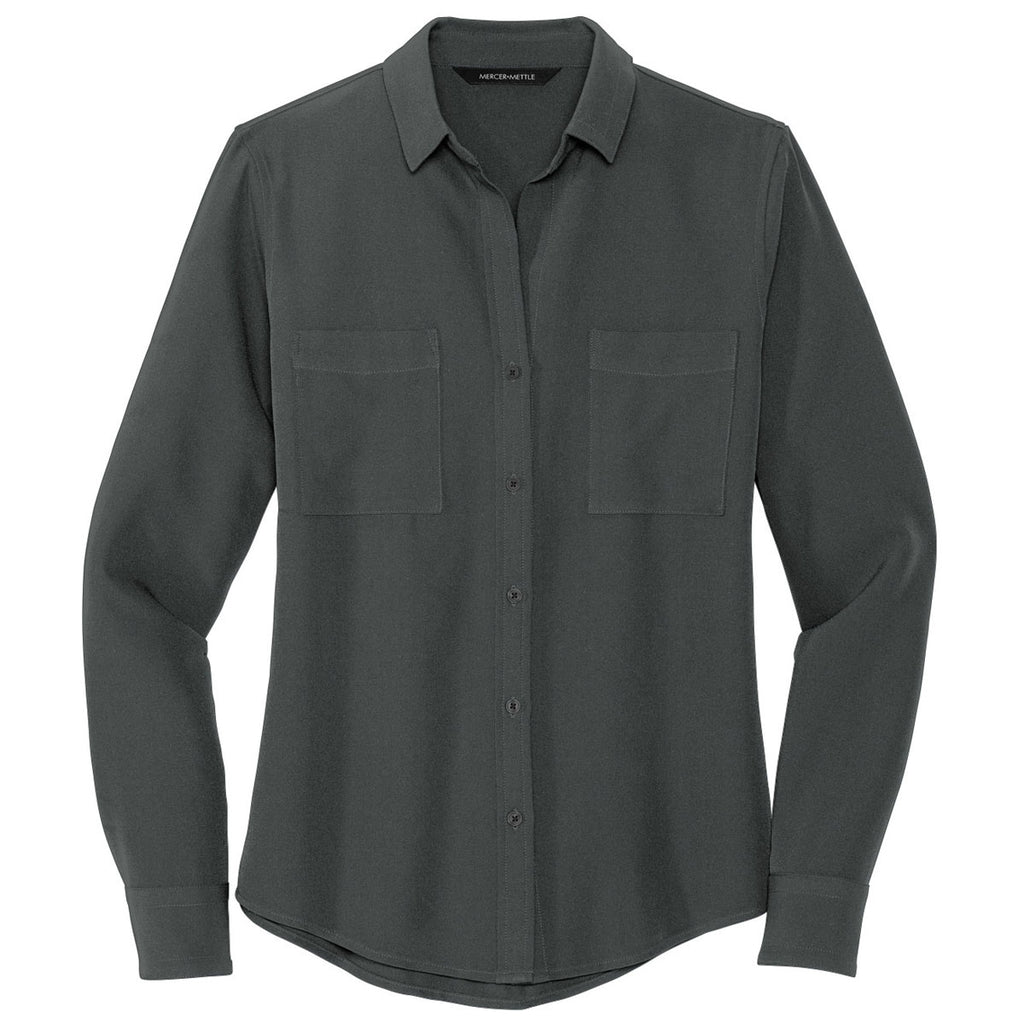 Mercer+Mettle Women's Anchor Grey Stretch Crepe Long Sleeve Camp Blouse with embroidery offers a refined, tailored look that can easily go from the cubicle to the club and back again. The soft fitting crepe fabric has a drop hem for versatility and style with adjustable button cuffs and full button front. Ideal for corporate apparel, uniforms, and much more. Order today.Highlights