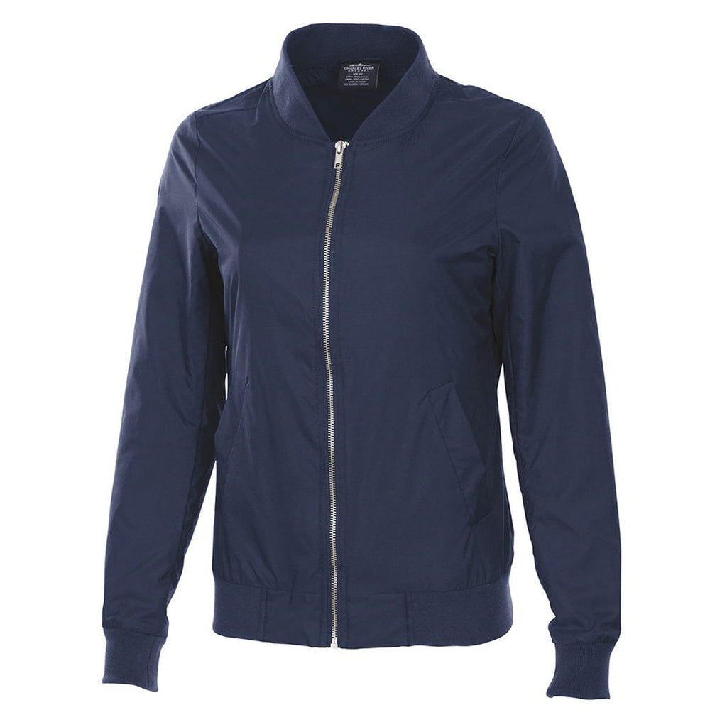 When you are looking for a custom logo on a jacket to branding your business or as a corporate gift then nothing is better than our Charles River Women's Navy Boston Flight Jacket. The jacket does not only feature a slim and modern silhouette design but also wind and water-resistant features. Constructed with River Tec Nylon taffeta and fully lined with lightweight nylon making it a versatile wardrobe essential. Its full zip styling with a metal zipper and snap closure pockets make the jacket famous. Also, feature ribbed knit detailing at the hem, collar, and sleeve cuffs. A perfect jacket for women to take on the classic bomber and for everyday use.Corresponding Men's Style: Charles River Men's Navy Boston Flight Jacket