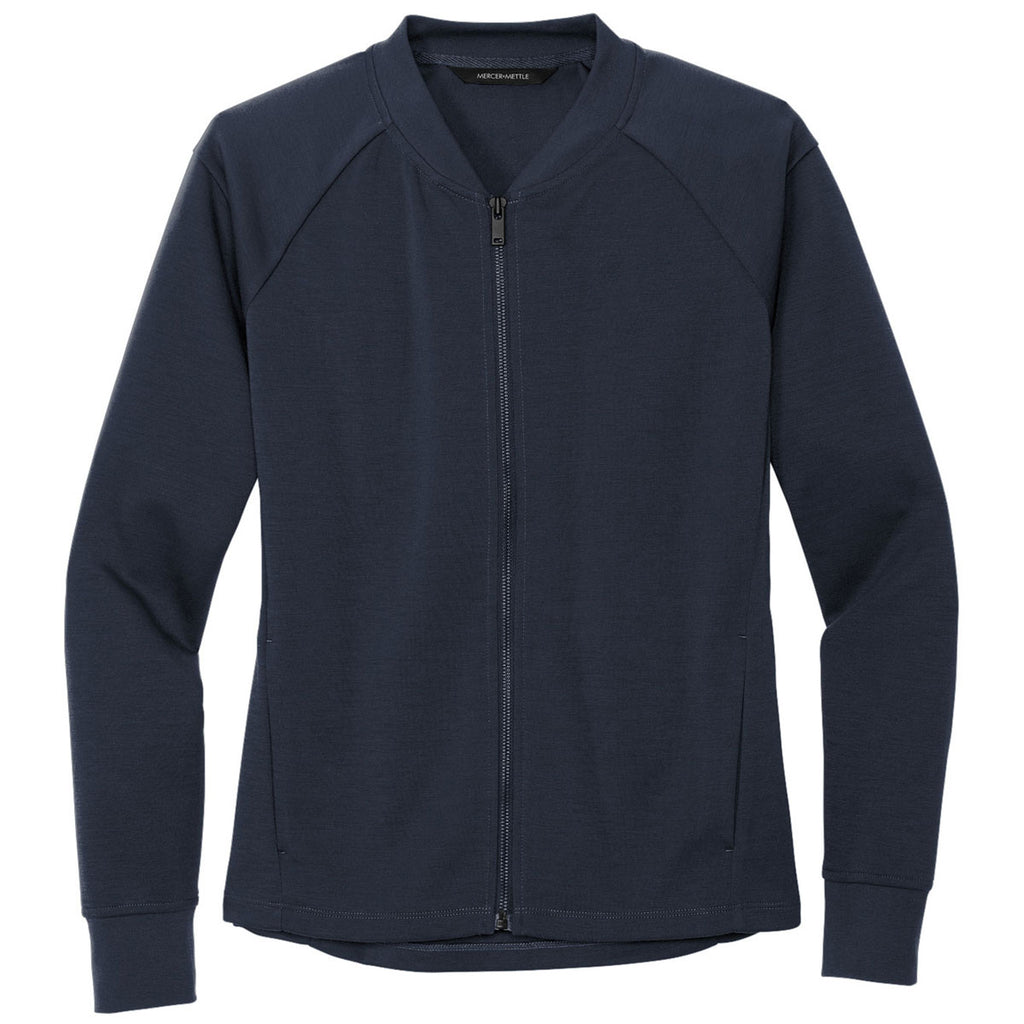 Add embroidery to the Mercer+Mettle Women's Night Navy Double-Knit Bomber to enjoy a smart, stylish look that is made for layering day or night. The double-knit jacket is a blend of sports inspiration and attitude with a nod to the traditional bomber. The sleek, fitted, full zip bomber would be a welcome addition to any wardrobe. Place an order today.Corresponding Men's Style: Mercer+Mettle Men's Night Navy Double-Knit Bomber
