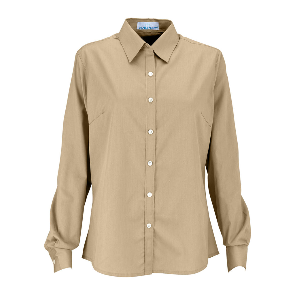 There is nothing wicked about ordering the custom logoed Vantage Women's Light Khaki Wicked Woven for the female members of your high flying team of business professionals. The easy to care for fabric consists of a cotton and polyester blend that handles the two more important criteria for high quality corporate apparel: comfort and durability. Bust darts enhance the feminine look of the woven shirt, while the spread collar presents a more conservative appearance worthy of a CEO. Ultraviolet ray protection means you never have to worry about harmful UV rays damaging your skin. Add your company logo on the large imprint area to generate buzz for your brand.Corresponding Men's Style: Vantage Men's Light Khaki Wicked Woven