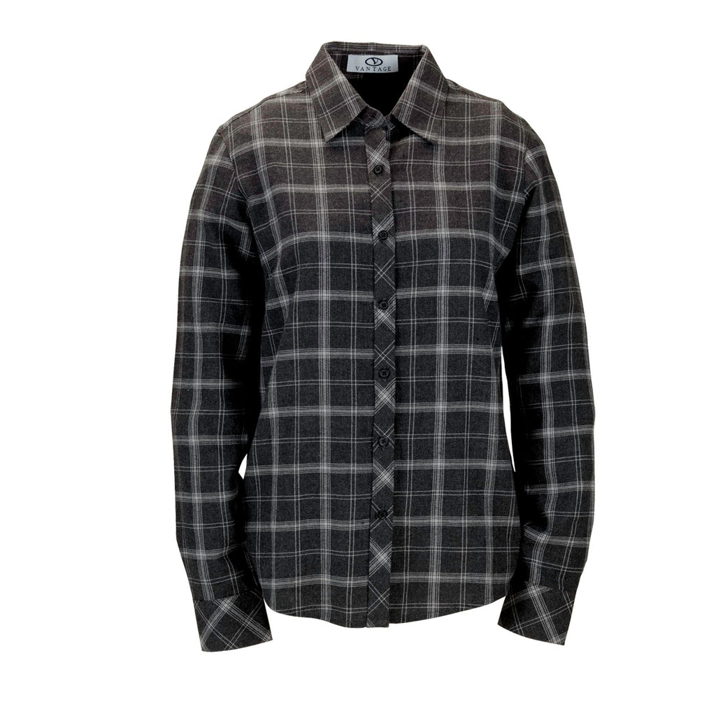 Be one of the first professionals to upgrade your winter wardrobe by ordering the company logoed Vantage Women's Charcoal/Light Grey Check Brewer Flannel. The new release from Vantage includes a large imprint area to attach a custom logo. Corporate logoed apparel offers your company a highly effective way to introduce your products and services to customer prospects. Wear the flannel shirt like a jacket over layers of warmth or as a middle layer that insulates your body from Old Man Winter. Thick cotton provides plenty of protection against icy Arctic blasts. Incredible style rules the day, as bust darts and the spread collar dazzle everyone you meet at outdoor corporate events.