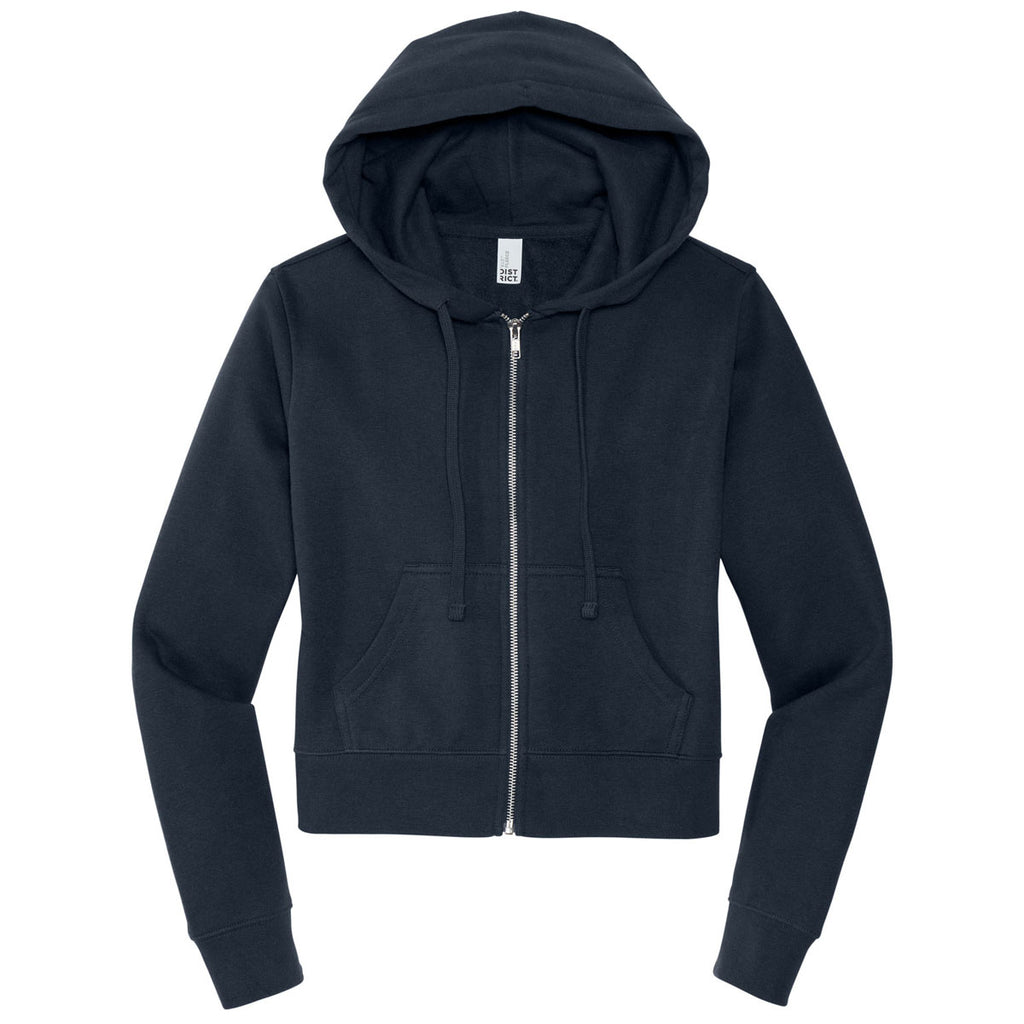 Choose a custom design for the District Women's New Navy V.I.T. Fleece Full Zip to showcase team spirit or support. The soft hoodie is great for embroidery in the cotton/polyester blend that will wrap you in comfort. Ideal as warm-up gear or to wear daily as a statement piece. The modest crop length makes this easy to layer and enjoy.Highlights