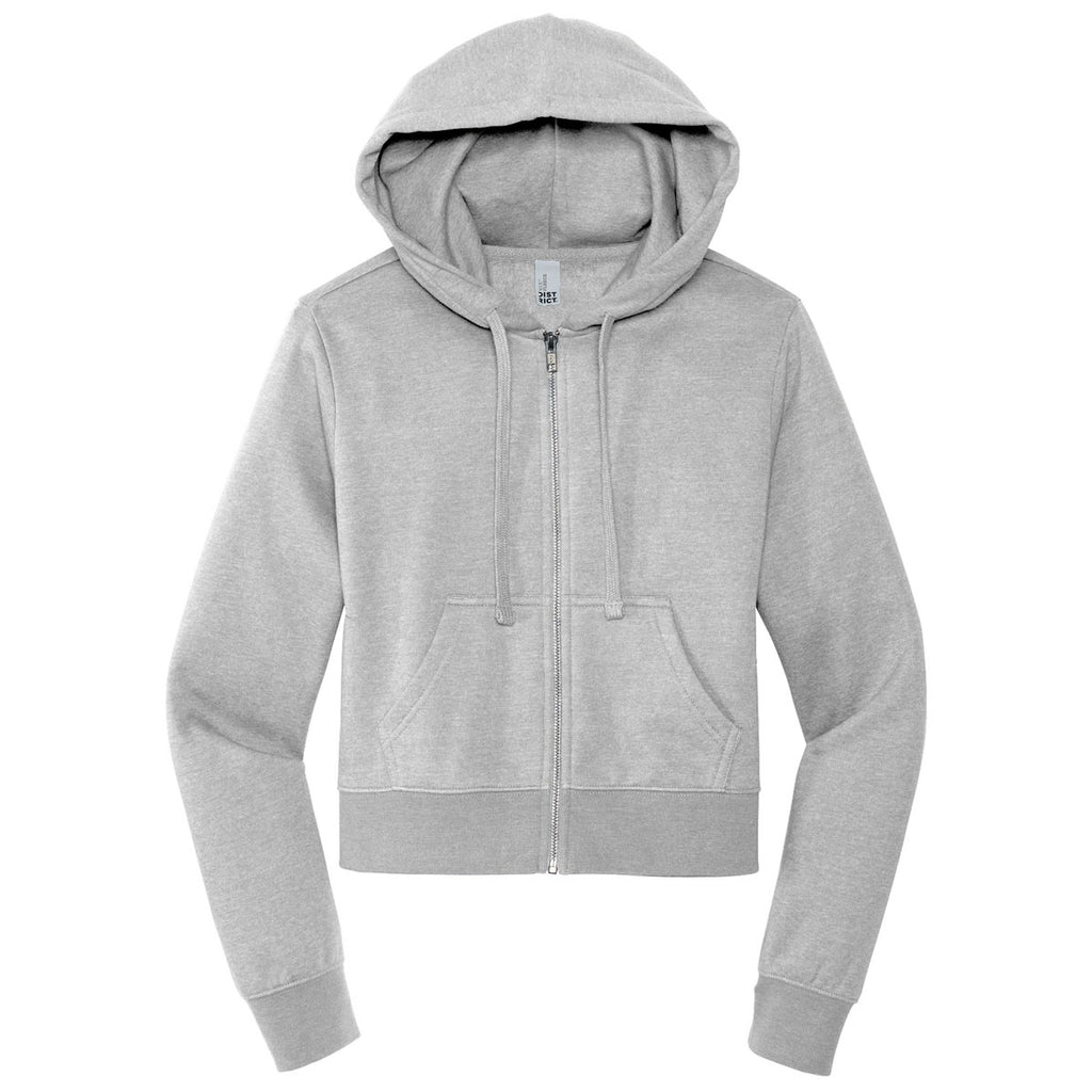 Choose a custom design for the District Women's Light Heather Grey V.I.T. Fleece Full Zip to showcase team spirit or support. The soft hoodie is great for embroidery in the cotton/polyester blend that will wrap you in comfort. Ideal as warm-up gear or to wear daily as a statement piece. The modest crop length makes this easy to layer and enjoy.Highlights