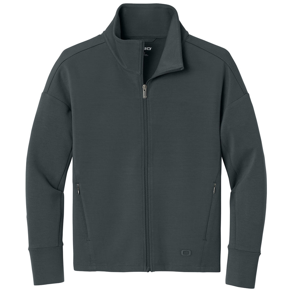Add a custom logo to the OGIO Women's Tarmac Grey Transcend Full-Zip to create a look that falls between work and leisure. The polished, elevated full-zip has a shawl collar and drop shoulders with blousing details at the sleeves. Ideal for a day with family, running errands, or an upscale casual event.
