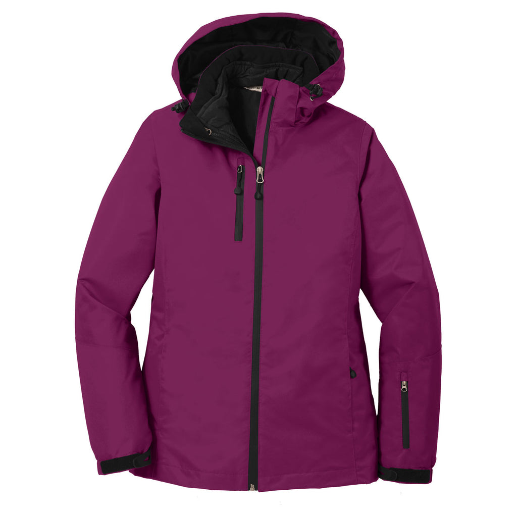 Try ignoring the weather outside one day and seeing how well you dress. Not such a great idea, was it? That's because the weather is by definition unpredictable; if you're going to want to be prepared, you're going to have to wear the jackets that separate you from mother nature. This Port Authority Women's Very Berry/Black Vortex Waterproof 3-in-1 Jacket is just what you need. Simply add your corporate logo to one of these pieces to make it a great embroidered piece of business apparel.