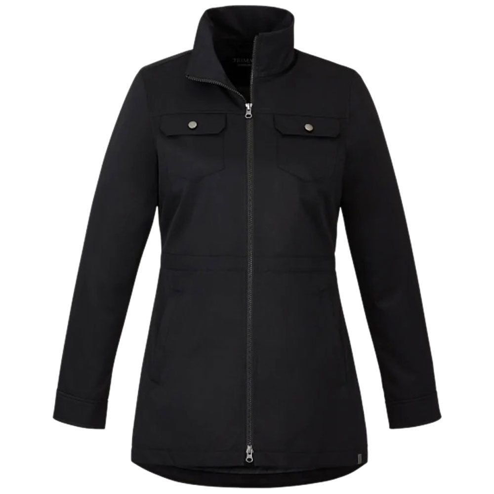 Enjoy a custom embroidered logo on the Elevate Women's Black Hardy Eco Jacket for a sustainable, hard-working look that is ready for the outdoors. The mid-length offers extra protection with a tapered waist for fit and style. Use this versatile jacket year-round with a corporate logo or other design of your choosing. Place an order today.Corresponding Men's Style: Elevate Men's Black Hardy Eco Jacket