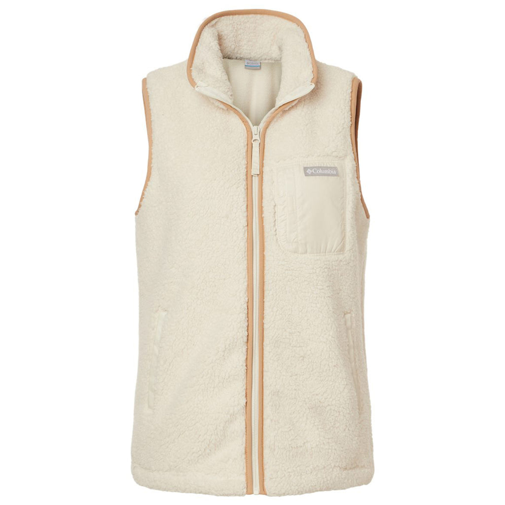 Choose embroidery for the Columbia Women's Chalk West Bend Vest for a classic look that can upgrade your style. This warm polyester sherpa vest is perfect for those cool autumn days while you enjoy the Great Outdoors. Dress up a pair of jeans as you sit around the campfire or use this vest as a middle layer when playing in the snow in the winter.This product cannot ship outside of the United States.