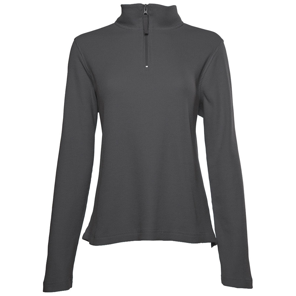 Add a custom logo to the Charles River Women's Charcoal Waffle Quarter Zip Pullover to create an upscale look that can go almost anywhere. The super soft waffle knit is easy to wear all day. Great for golf, tennis, or general wear, the drop tail hem means you are well covered. Great for seasonal transitions, this pullover can be layered or worn alone for versatility. Place an order today.Corresponding Men's Style: Charles River Men's Charcoal Waffle Quarter Zip Pullover