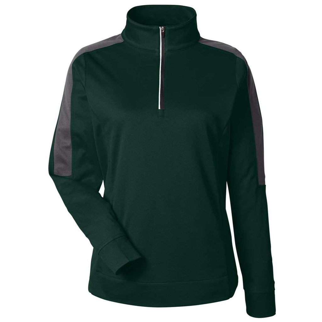 Core 365 Women's Forest/Carbon Market Snag Protect Mesh Colorblock Quarter-Zip Pullover