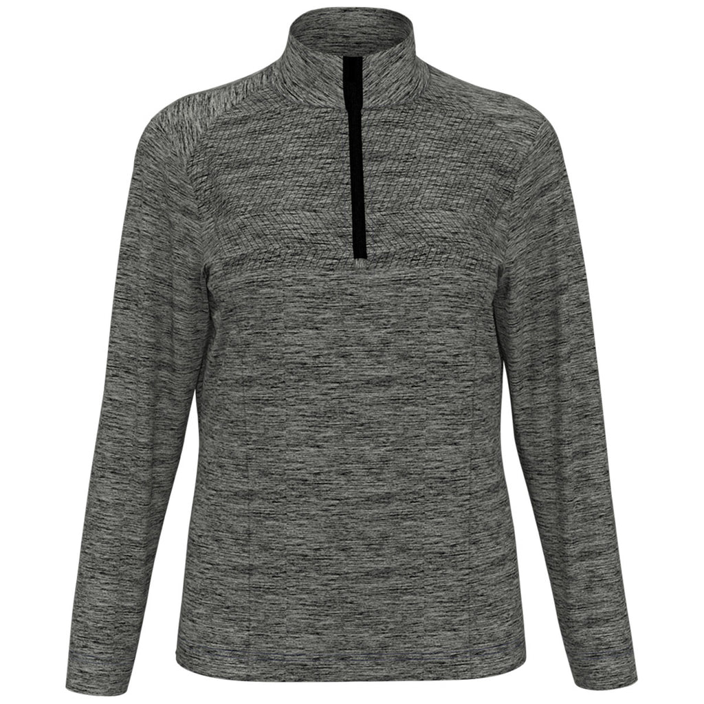 Cozy up in a custom embroidered Perry Ellis Women's Grey Heather 1/4 Zip Pullover with a water-repellent finish and UPF 50+ sun protection. The enhanced stretch technology means your range of motion is not hindered, whether you are practicing your putt, shooting free throws, or heading into the office. Place an order today.Corresponding Men's Style: Perry Ellis Men's Grey Heather 1/4 Zip Pullover