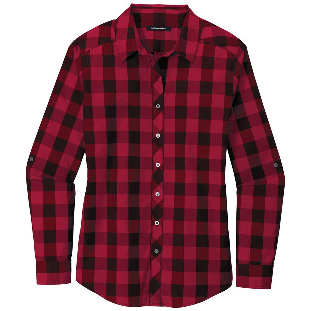 Relax into an embroidered Port Authority Women's Rich Red Everyday Plaid Shirt. This traditional buffalo check pattern is lightweight in a cotton, poly blend. The easy care features of this shirt will have you willing to wear it daily which makes it perfect as employee apparel with a company logo. This versatile shirt can be worn alone or layered over a tee or tank for a new look. The open collar and French front have roll sleeves and a curved shirt tail hem for the details that bring the look together. Add a custom logo to use these as employee gifts that can be dressed up or down as needed.Corresponding Men's Style: Port Authority Men's Rich Red Everyday Plaid Shirt
