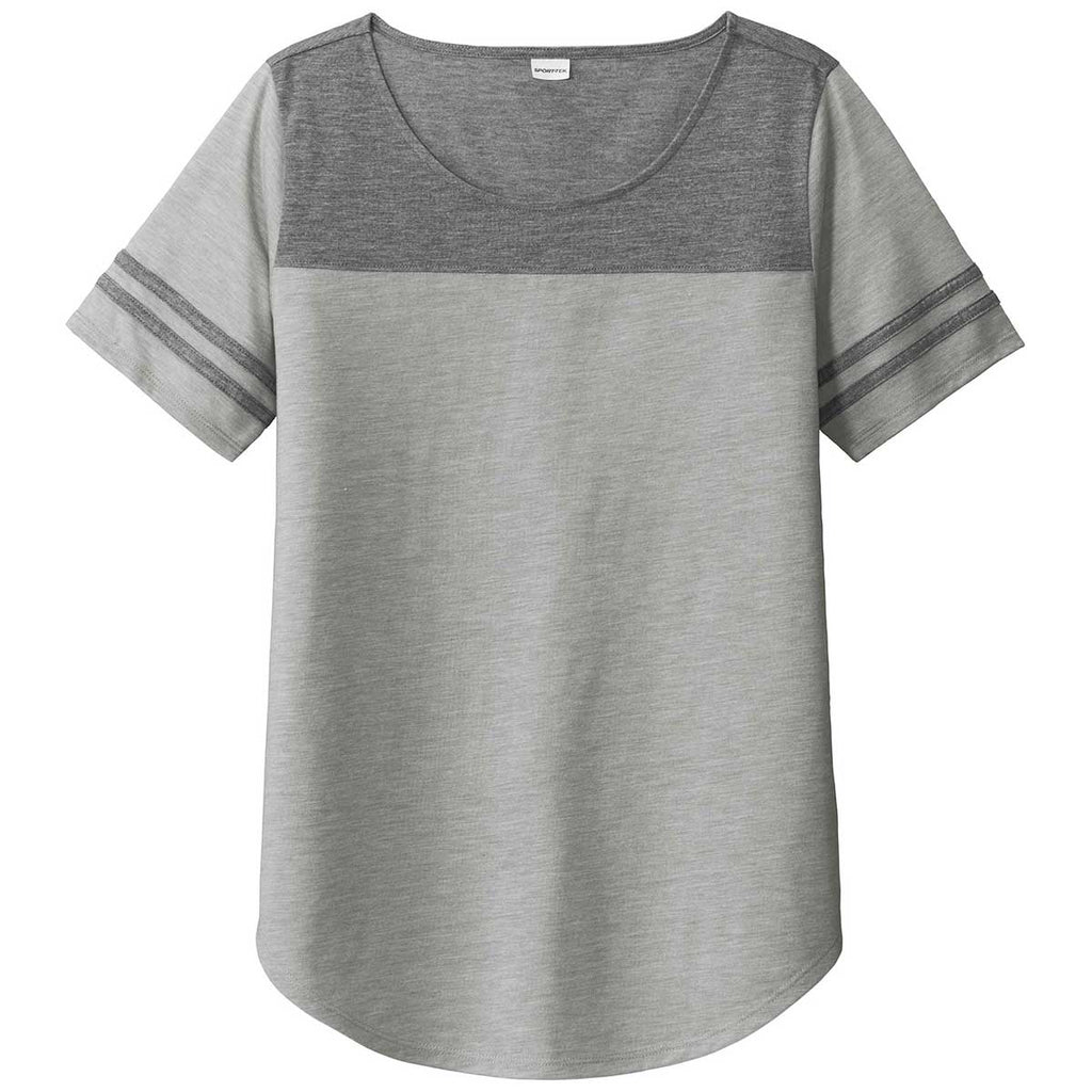 Be prepared on game day with a custom heat transfer Sport-Tek Women's Dark Grey Heather/Light Grey Heather PosiCharge Tri-Blend Wicking Fan Tee. This ultra comfortable tee can have the heat transfer design of your choosing carefully placed to make sure you stand out on game day. Perfect for team events with a corporate logo of sponsors or just to wear to support a specific player. Available in a wide range of colors and sizes, this poly, cotton, rayon jersey blend is moisture wicking for the days when the weather is toasty. Contrasting front and back yoke and stripes on the sleeves make this tee a sports fan's dream. Add a company logo to give as employee gifts that will be enjoyed on game days.