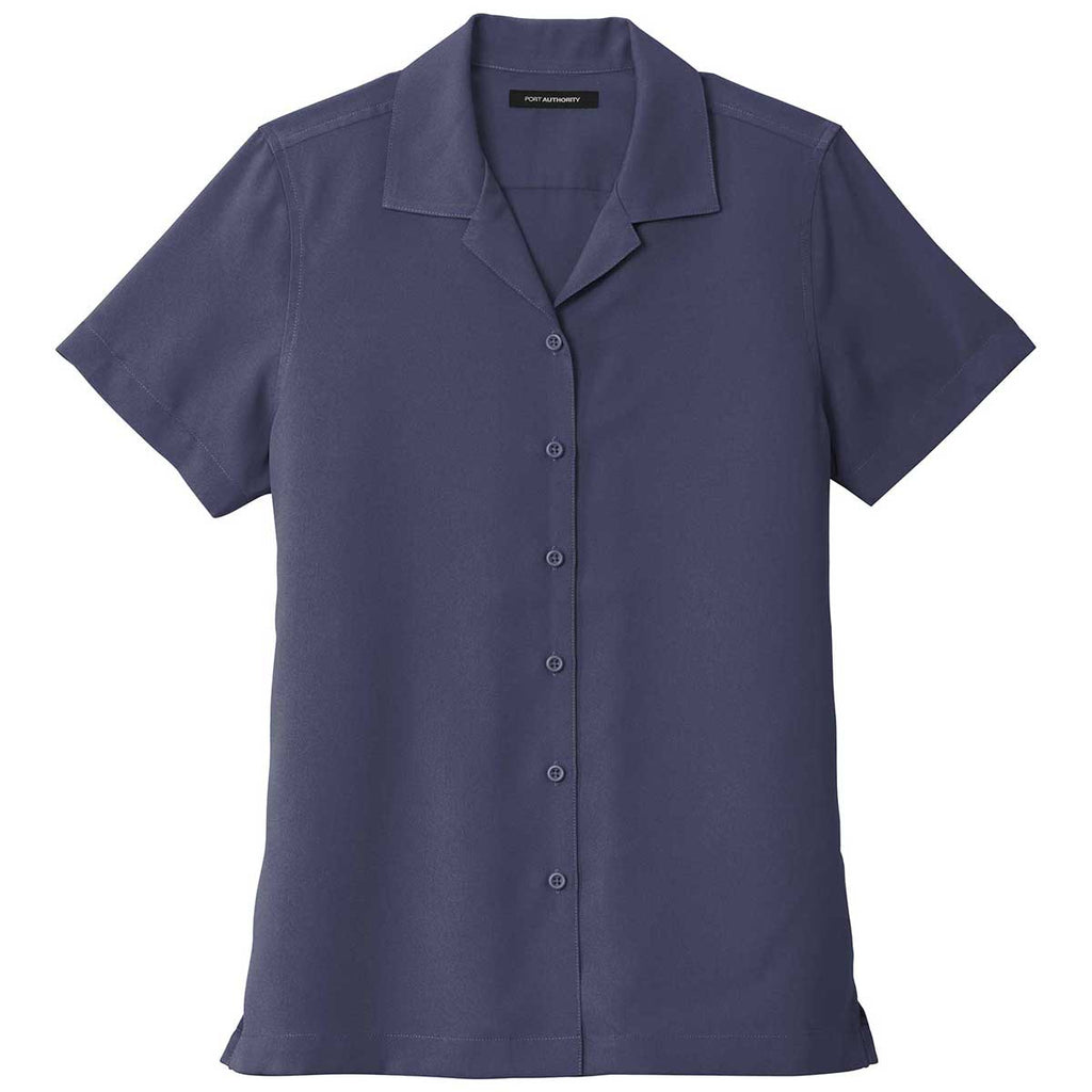 Port Authority Women's True Navy Short Sleeve Performance Staff Shirt provides the perfect canvas for an embroidery design of your choosing. The 100% polyester, lightweight short sleeve shirt is fashion forward and functional for the office or a day out with friends. Complete with stain release, odor-fighting, and moisture wicking technologies, this shirt is a must have at corporate events and daily office wear. Add a corporate logo to advertise your brand or a custom logo to use for daily wear. The camp collar styling is perfect for layering and side vents offer freedom of movement. Place your order right away to add these to your personal wardrobe or give as gifts.Corresponding Men's Style: Port Authority Men's True Navy Short Sleeve Performance Staff Shirt