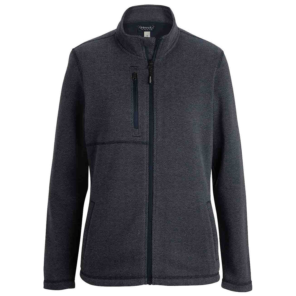 Choose a custom logo for the Edwards Women's Navy Herringbone Sweater Knit Jacket with full zip front. The polyester and fleece combination will keep you warm whether camping, hiking, or commuting each morning. The vertical zippered pocket is great for small items when going for a run and handwarmer pockets offers extra room. Place an order today.