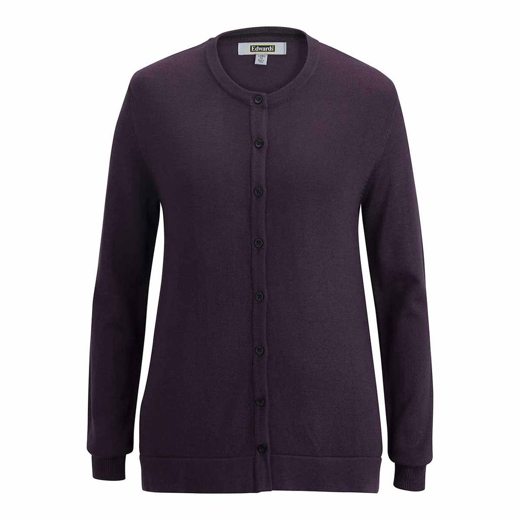 Edwards Women's Eggplant Crew Neck Cardigan With Drop Tail