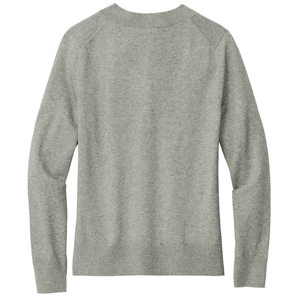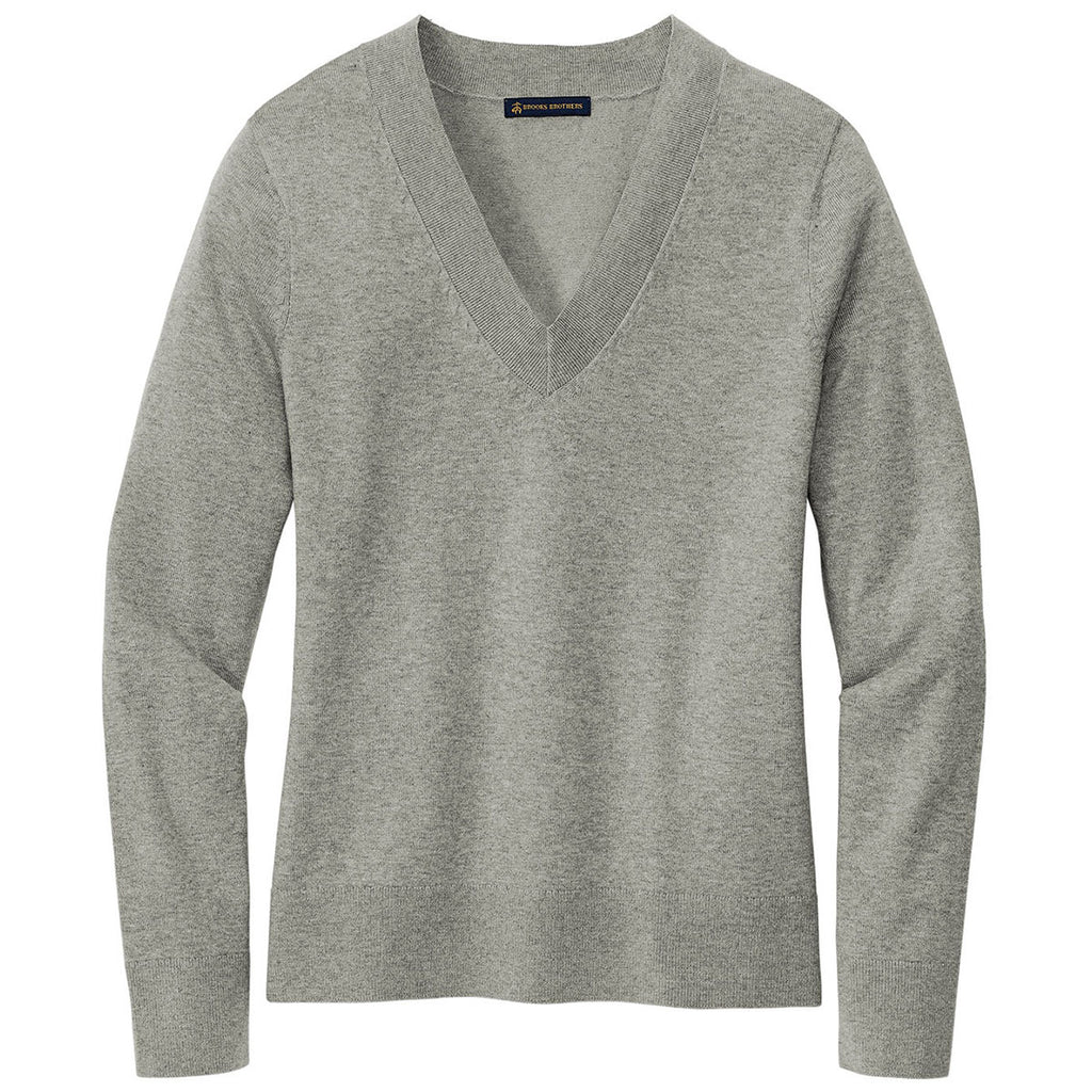 Brooks Brothers Women's Light Shadow Grey Heather Cotton Stretch V-Neck Sweater with custom embroidery for a classical crisp corporate piece. Stand out at any tradeshow and at the office in this high-quality sweater. Style and layer to add a personal touch to create multiple different outfits. Reach out and snag this multi-purpose piece.