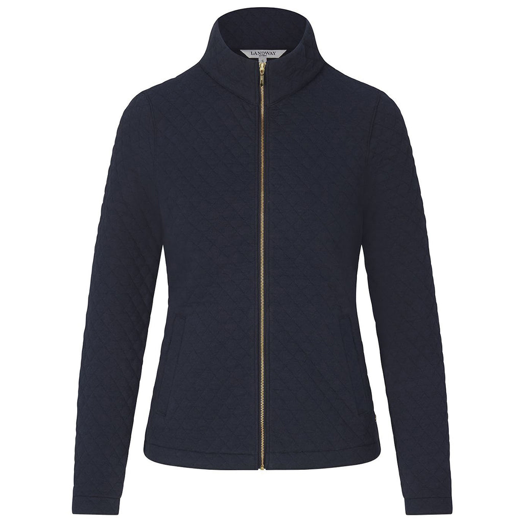 The Landway Women's Navy Seneca Quilted Full-Zip Sweater with embroidery is a fun and comfortable way to look and feel great. This welcomed addition to your logoed apparel line or personal wardrobe is cozy for both casual outings and chilly evenings sitting around the fire with friends. A wonderful gift for yourself and others.Highlights