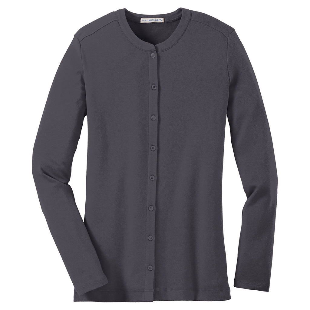 Port Authority Women's Grey Smoke Concept Stretch Button-Front Cardigan
