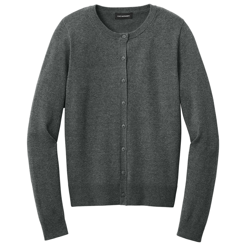 Port Authority Women's Charcoal Heather Easy Care Crewneck Cardigan Sweater