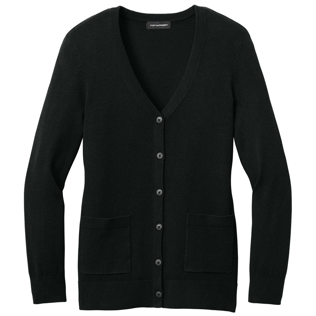 Port Authority Women's Deep Black Easy Care Button-Up Cardigan Sweater