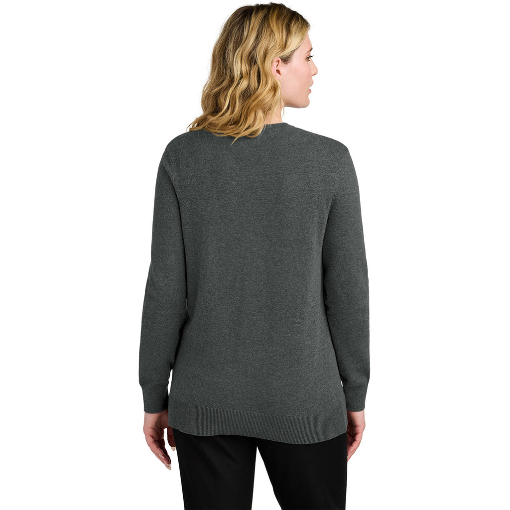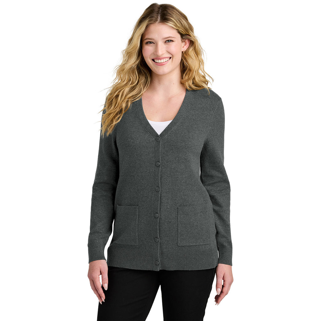 Port Authority Women's Charcoal Heather Easy Care Button-Up Cardigan Sweater