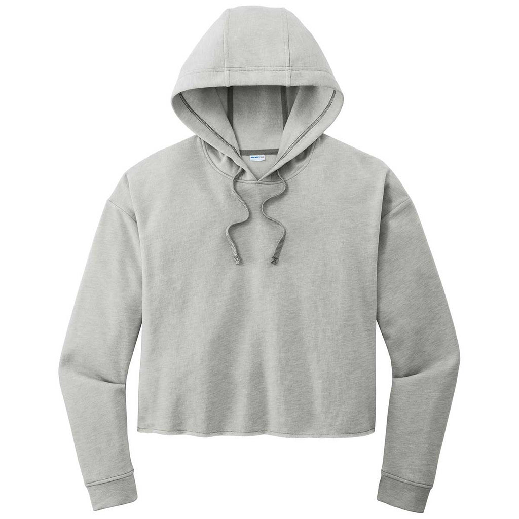 Sport-Tek Women's Light Grey Heather PosiCharge Tri-Blend Wicking Fleece Crop Hoodie
