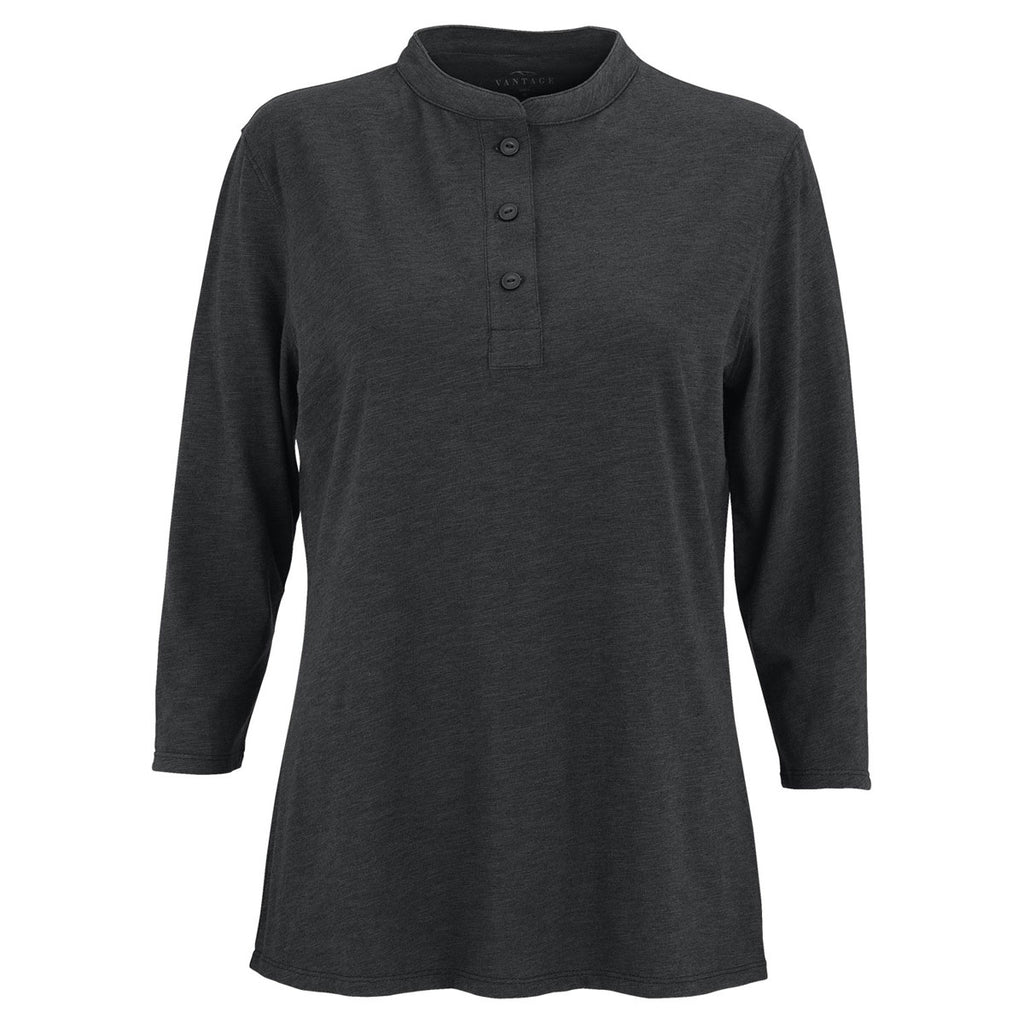 With a self-goods collar and three-button placket, the embroidered Vantage Women's Black Cambridge Henley sets the pace for casual corporate fashion. Enjoy the smooth feel of cotton and the tough performance of polyester while playing golf or working in the backyard. Add the curved hem bottom and you have a long sleeve shirt that will make a favorable impression on everyone you meet at industry trade shows. Even better, hand out the shirt to customer prospects to build good will. Make sure to attach your company logo on the large imprint area to stir interest for your brand.Corresponding Men's Style: Vantage Men's Black Cambridge Henley