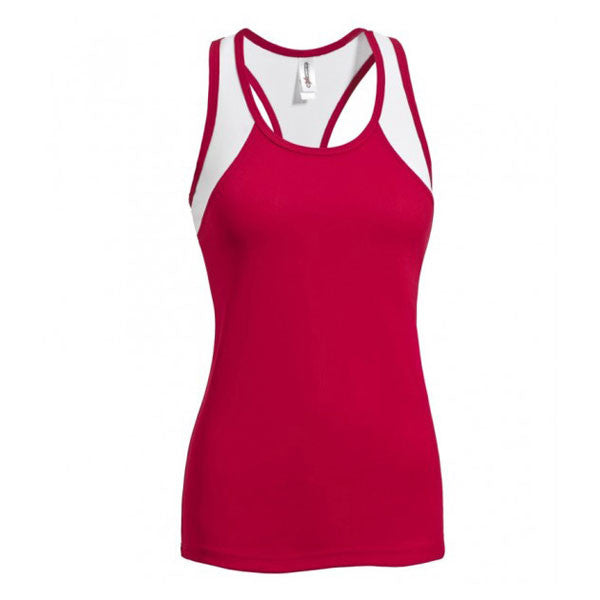 Head to the gym in this racerback-inspired Expert Women's Red/White Distance Singlet that screams 'I don't glisten, I sweat' attitude. Self-binding neck and armholes ensure no-fuss movement of your guns. The racerback cut will make you feel workoutaholic the more iron you pump. Contrast panels add to aesthetics of this sleeveless workout top while a fold over pocket holds your essentials. Treated with antibacterial and sweat-wicking properties. Customize this women's singlet with your logo to bring your company to the public eye. Perfect for dance studios, gyms and other businesses related to active lifestyle.